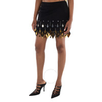 Rabanne Ladies Bottoms. Fashion category: Skirts. SKU: 23FCJU394PO0323-P001. Color: Black. Rabanne Cut Out Embellished Crepe Skirt. This thigh-length skirt features a crepe texture with cut-out, stud, and chain-link detailing, a scallop hem, and paillette accents. Outer: Material: Polyester 100% Lining: Acetate 71%, Silk 29%. GENERAL Color: Black INFORMATION Brand: Rabanne Gender: Womens Model: 23FCJU394PO0323-P001 DETAILS Category: Bottoms Apparel Type: Skirts ADDITIONAL INFO Jomashop Sku: -23FCJU394PO0323P001 Department: Clothing
