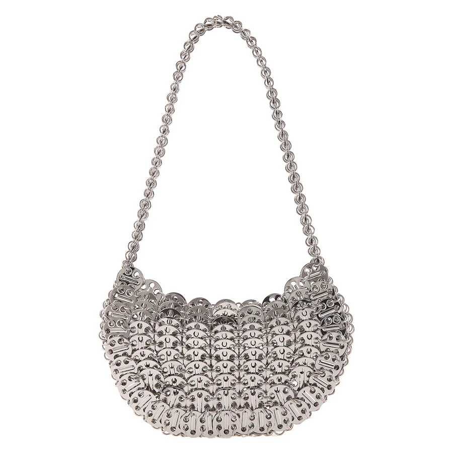 Crafted from hand-assembled metallic pieces, the 1969 moon bag designed in a silver color is a timeless and unique piece symbolizing the Rabanne aesthetic. 262 silver discs. Composition : 100% Brass GENERAL Brand Type: Designer Color: Silver INFORMATION Brand: Paco Rabanne Gender: Womens Model: 23PSS0337MET001-SILVER ADDITIONAL INFO UPC Code: 3349660990137 Jomashop Sku: Z-7QLCL Department: Bags Category: Shoulder Bag