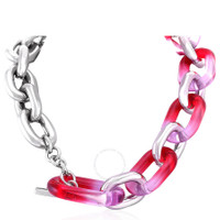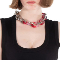 Paco Rabanne Ladies Necklaces. SKU: 23PBB0015MET405. Color: Silver/Pink/Red. Necklace style: Chain. Chain type: Link. Paco Rabanne Oversized Chain Link Logo-Engraved Resin Necklace. Necklace made from oversized chain links, featuring a bold combination of silver-tone hardware and hot pink resin. Engraved with the logo. 100% Metal, 100% Acetate. Made in Italy. GENERAL Box: No Papers: No Brand Type: Designer Color: Silver/Pink/Red INFORMATION Brand: Paco Rabanne Gender: Womens Model: 23PBB0015MET405-SILVER / PINK / RED DETAILS Necklaces: Chain Chain Type: Link ADDITIONAL INFO UPC Code: 3349660994135 Jomashop Sku: Z-TS7EH Department: Jewelry Category: Necklaces