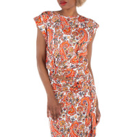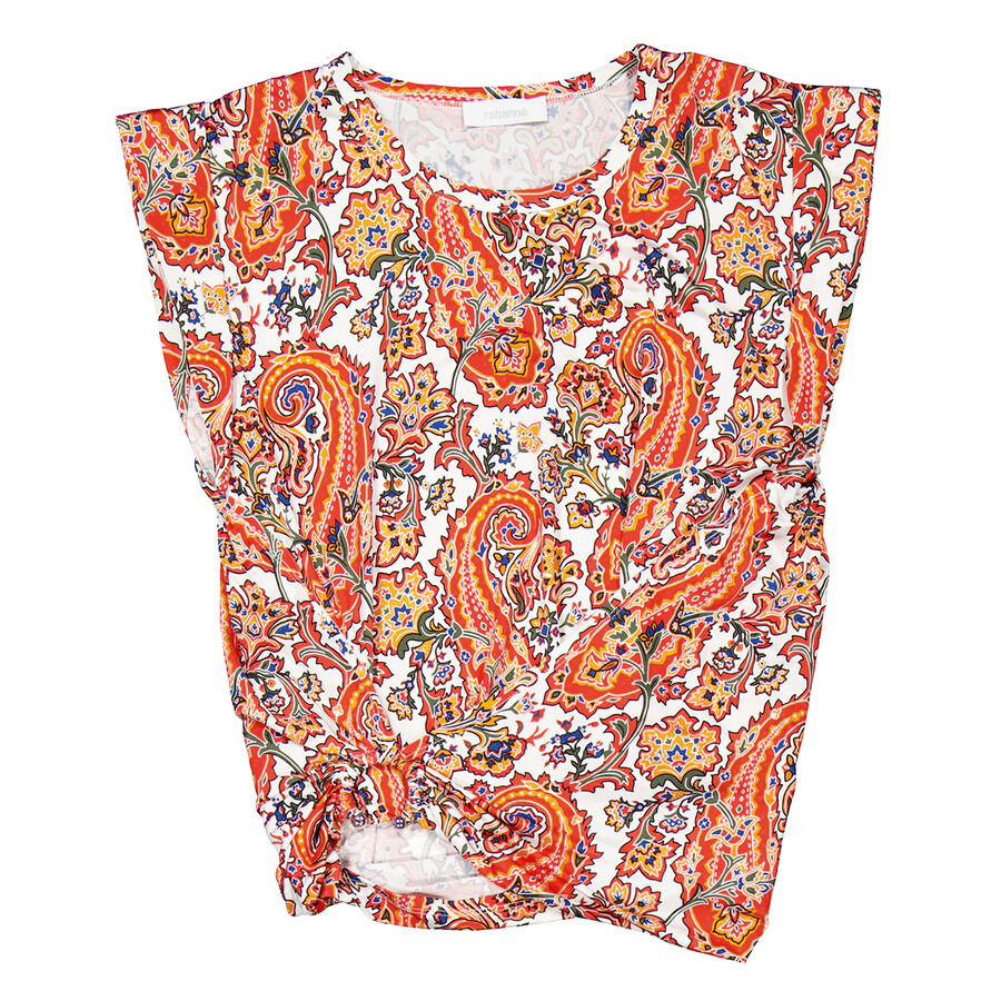 Rabanne Ladies Tops. Fashion category: Shirts & Blouses. SKU: 24FJTO833VI0269. Color: Cachemire Creme. Rabanne Haut Blouse in Cachemire Creme. The Haut blouse features a stretch design with a vibrant paisley print, gathered detailing, and a crew neck. It’s finished with shoulder pads, cap sleeves, and a cropped cut for a stylish, flattering fit. Viscose 90%, Spandex/Elastane 10% GENERAL Color: Cachemire Creme INFORMATION Brand: Rabanne Gender: Womens Model: 24FJTO833VI0269-CACHEMIRE CREME DETAILS Category: Tops Apparel Type: Shirts & Blouses Material: Elastane, Viscose ADDITIONAL INFO Jomashop Sku: -Y-7B379F Department: Clothing