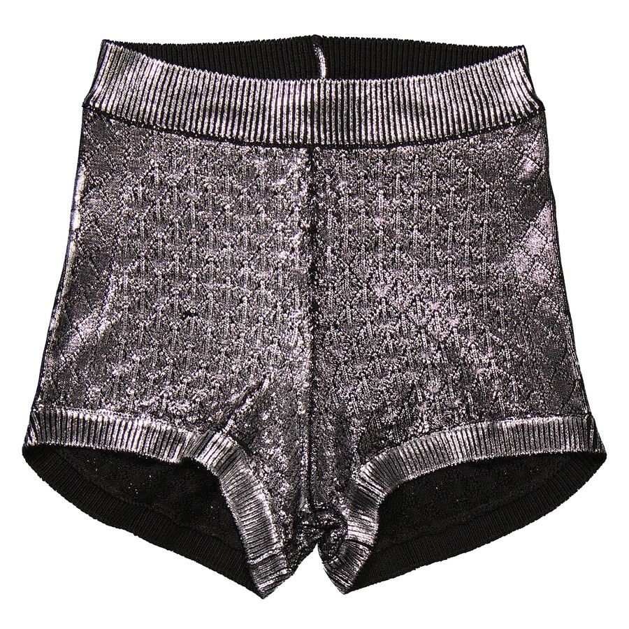 Rabanne Ladies Black Metallic Effect Ribbed Knit Shorts