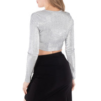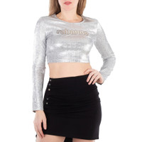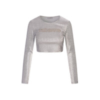 Brand: Rabanne. Fashion category: Shirts & Blouses. SKU: 24PJTO710VI0261-SILVER. Color: Grey. Rabanne Ladies Grey Long-Sleeved Crop Top. Crafted from a metallic viscose blend fabric, this top features a crewneck, long sleeves, a cropped silhouette, and an embossed logo on the chest. 77% viscose, 16% polyester, 7% elastane. Made in Portugal. GENERAL Color: Grey INFORMATION Brand: Rabanne Gender: Womens Model: 24PJTO710VI0261-SILVER DETAILS Category: Tops Apparel Type: Shirts & Blouses Material: Elastane., Polyester, Viscose ADDITIONAL INFO Jomashop Sku: -PJTO710VI0261SILVER Department: Clothing