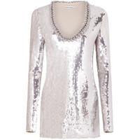 MINI SILVER SEQUINS DRESS WITH ROUND NECKLINE