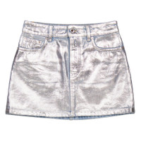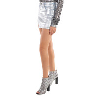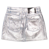 Rabanne Ladies Light Silver Metallic Denim Miniskirt