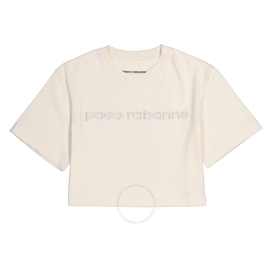 Rabanne Ladies Nude Logo-Embroidered Cropped T-Shirt