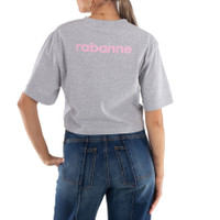 Rabanne Ladies Tops. Fashion category: T-Shirts & Henleys. SKU: 23AJTE630CO0480. Color: Grey. Rabanne Logo Print Cropped Cotton T-Shirt. This organic cotton T-shirt features logo prints on both the front and rear, a crew neck, short sleeves, a straight hem, and a cropped fit. 100% Organic Cotton. GENERAL Color: Grey INFORMATION Brand: Rabanne Gender: Womens Model: 23AJTE630CO0480 DETAILS Category: Tops Apparel Type: T-Shirts & Henleys ADDITIONAL INFO Jomashop Sku: -23AJTE630CO0480GREY Department: Clothing