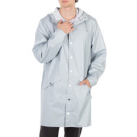 Rains Unisex Outerwear. Fashion category: Coats & Jackets. SKU: 1202022 wind. Color: Wind. Rains Lightweight Waterproof Long Jacket - Wind. Crafted from Rains' signature PU fabric, this jacket features a placket with snap fastenings, a drawstring hood with a cap brim, snap-adjustable cuffs, and a back yoke with concealed vents. It also includes two side pockets with snaps, eyelets at armholes, ultrasonically welded seams, and a fishtail hem. 100% PES (Polyester). GENERAL Color: Wind INFORMATION Brand: Rains Gender: Mens Model: 1202022 wind DETAILS Category: Outerwear Apparel Type: Coats & Jackets Material: Polyester ADDITIONAL INFO Jomashop Sku: -1202022WIND Department: Clothing