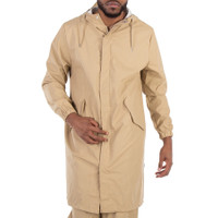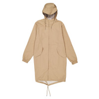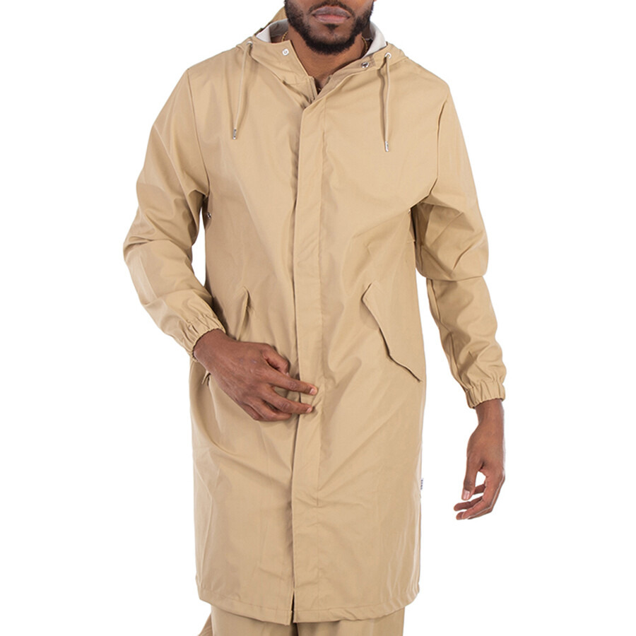Rains Men's Outerwear. Fashion category: Coats & Jackets. SKU: 18140-SAND. Color: Sand. Rains Men's Sand Fishtail Waterproof Parka. Crafted from Rains' signature PU fabric, this jacket features welded seams and utility-inspired pockets for a functional design. It has a vented back yoke, a hood with a built-in cap and drawstring, and a press-stud fastening. The jacket is finished with elasticated cuffs for a snug fit around the wrists, a collar flap, long sleeves, and two side flap pockets. Its mid-length cut and drawstring trim add both style and practicality. 100% Polyester. GENERAL Color: Sand INFORMATION Brand: Rains Gender: Mens Model: 18140-SAND DETAILS Category: Outerwear Apparel Type: Coats & Jackets Material: Polyester ADDITIONAL INFO Jomashop Sku: -18140SAND Department: Clothing
