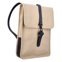 Rains Men's Backpack. SKU: 13020-24 SAND. Color: Sand. Size: 17.3 in x 3.9 in x 11.4 in. Rains Sand Waterproof Mini Backpack. This mini backpack is crafted from waterproof signature PU fabric and features a flap with magnetic snap fastenings, a single main compartment, an external back zip pocket, an internal zip pocket, and a flat pocket that fits a 13" laptop, along with adjustable shoulder straps for a comfortable fit. 100% PES (Polyester). Coating: 100% PU (Polyurethane). GENERAL Size Info: 17.3 in x 3.9 in x 11.4 in Color: Sand INFORMATION Brand: Rains Gender: Mens Model: 13020-24 SAND DETAILS Material: Polyester Closure: Snap ADDITIONAL INFO UPC Code: 5711747560942 Jomashop Sku: Z-MDUYP Department: Bags Category: Backpack
