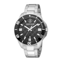 Silver-tone stainless steel case and bracelet. Black stainless steel bezel. Black dial with silver-tone hands and index hour markers. Dial Type: Analog. Luminescent hands and markers. Date display at the 6 o'clock position. Quartz movement. Scratch resistant mineral crystal. Round case shape, case size: 44 mm. Fold over clasp with a safety release. Water resistant at 100 meters / 330 feet. Functions: date, hour, minute, second. Fashion Watch Series. Fashion watch style. Roberto Cavalli Fashion Watch Quartz Black Dial Men's Watch RC5G013M0085. CASE Case Size: 44 Case Material: Stainless Steel Case Shape: Round BAND Band Material: Stainless Steel Band Type: Bracelet Band Color: Silver-tone Clasp: Fold Over with Safety Release DIAL Dial Color: Black Type: Analog Crystal: Scratch Resistant Mineral Hands: Silver-tone Dial Markers: Index Luminiscence: Hands and Markers Bezel Color: Black Bezel Material: Stainless Steel INFORMATION Brand: Roberto Cavalli Series: Fashion Watch Collection Name: Fashion Watch Gender: Mens Model: RC5G013M0085 Movement: Quartz FEATURES Water Resistance: 100 meters / 330 feet Calendar: Date display at the 6 o'clock position Functions: Date, Hour, Minute, Second Watch Features: Stainless Steel, Analog ADDITIONAL INFO Watch Style: Fashion Warranty: With Manufacturers Guarantee UPC Code: 4894626178696 Jomashop Sku: ROC-RC5G013M0085 Department: Watches