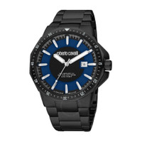 Black stainless steel case and bracelet. Black stainless steel bezel. Blue dial with silver-tone hands and index hour markers. Minute markers around the outer rim. Dial Type: Analog. Luminescent hands and markers. Date display at the 3 o'clock position. Quartz movement. Scratch resistant sapphire crystal. Round case shape, case size: 44 mm. Fold over clasp with a safety release. Water resistant at 100 meters / 330 feet. Functions: date, hour, minute, second. Fashion Watch Series. Fashion watch style. Watch label: Swiss Made. Roberto Cavalli Fashion Watch Quartz Blue Dial Men's Watch RV1G182M0081. CASE Case Size: 44 Case Material: Stainless Steel Case Shape: Round BAND Band Material: Stainless Steel Band Type: Bracelet Band Color: Black Clasp: Fold Over with Safety Release DIAL Dial Color: Blue Type: Analog Crystal: Scratch Resistant Sapphire Hands: Silver-tone Dial Markers: Index Second Markers: Minute Markers around the outer rim Luminiscence: Hands and Markers Bezel Color: Black Bezel Material: Stainless Steel INFORMATION Brand: Roberto Cavalli Series: Fashion Watch Collection Name: Fashion Watch Gender: Mens Model: RV1G182M0081 Watch Label: Swiss Made Movement: Quartz FEATURES Water Resistance: 100 meters / 330 feet Calendar: Date display at the 3 o'clock position Functions: Date, Hour, Minute, Second Watch Features: Stainless Steel, Analog ADDITIONAL INFO Watch Style: Fashion Warranty: With Manufacturers Guarantee UPC Code: 4894626188756 Jomashop Sku: Y-A4GNR Department: Watches