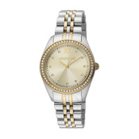 Silver-tone stainless steel case with a two-tone (silver-tone and yellow gold-tone) stainless steel bracelet. Fixed yellow gold-tone stainless steel bezel. Champagne dial with yellow gold-tone hands and index hour markers. Minute markers around the outer rim. Dial Type: Analog. Quartz movement. Scratch resistant mineral crystal. Round case shape, case size: 31 mm. Fold over clasp with a safety release. Water resistant at 50 meters / 165 feet. Functions: hour, minute, second. Fashion Watch Series. Fashion watch style. Roberto Cavalli Fashion Watch Quartz Champagne Dial Ladies Watch RC5L036M0085. INFORMATION Brand: Roberto Cavalli Series: Fashion Watch Collection Name: Fashion Watch Gender: Womens Model: RC5L036M0085 Movement: Quartz CASE Case Size: 31 mm Case Material: Stainless Steel Case Shape: Round BAND Band Material: Stainless Steel Band Type: Bracelet Band Color: Two-tone (Silver-tone and Yellow Gold-tone) Clasp: Fold Over with Safety Release DIAL Dial Color: Champagne Type: Analog Crystal: Scratch Resistant Mineral Hands: Yellow Gold-tone Dial Markers: Index Second Markers: Minute Markers around the outer rim Bezel: Fixed Bezel Color: Yellow Gold-tone Bezel Material: Stainless Steel FEATURES Water Resistance: 50 meters / 165 feet Functions: Hour, Minute, Second Watch Features: Stainless Steel, Gold, Analog ADDITIONAL INFO Watch Style: Fashion Warranty: With Manufacturers Guarantee UPC Code: 4894626190384 Jomashop Sku: Y-A4GH2 Department: Watches