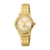 Yellow gold-tone stainless steel case and bracelet. Fixed yellow gold-tone stainless steel bezel. Champagne dial with yellow gold-tone hands and index hour markers. Minute markers around the outer rim. Dial Type: Analog. Quartz movement. Scratch resistant sapphire crystal. Round case shape, case size: 30 mm. Fold over clasp with a safety release. Water resistant at 50 meters / 165 feet. Functions: hour, minute, second. Fashion Watch Series. Fashion watch style. Watch label: Swiss Made. Roberto Cavalli Fashion Watch Quartz Champagne Dial Ladies Watch RV1L193M0051. INFORMATION Brand: Roberto Cavalli Series: Fashion Watch Collection Name: Fashion Watch Gender: Womens Model: RV1L193M0051 Watch Label: Swiss Made Movement: Quartz CASE Case Size: 30 mm Case Material: Stainless Steel Case Shape: Round BAND Band Material: Stainless Steel Band Type: Bracelet Band Color: Yellow Gold-tone Clasp: Fold Over with Safety Release DIAL Dial Color: Champagne Type: Analog Crystal: Scratch Resistant Sapphire Hands: Yellow Gold-tone Dial Markers: Index Second Markers: Minute Markers around the outer rim Bezel: Fixed Bezel Color: Yellow Gold-tone Bezel Material: Stainless Steel FEATURES Water Resistance: 50 meters / 165 feet Functions: Hour, Minute, Second Watch Features: Stainless Steel, Gold, Analog ADDITIONAL INFO Watch Style: Fashion Warranty: With Manufacturers Guarantee UPC Code: 4894626179181 Jomashop Sku: Y-A4GC9 Department: Watches