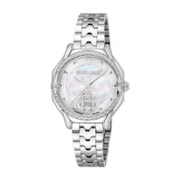 Silver-tone stainless steel case and bracelet. Fixed silver-tone stainless steel bezel. Mother of pearl dial with silver-tone hands and index hour markers. Dial Type: Analog. Quartz movement. Scratch resistant sapphire crystal. Round case shape, case size: 32 mm. Fold over clasp with a safety release. Water resistant at 50 meters / 165 feet. Functions: hour, minute, second. Fashion Watch Series. Fashion watch style. Watch label: Swiss Made. Roberto Cavalli Fashion Watch Quartz Ladies Watch RV1L225M0041. INFORMATION Brand: Roberto Cavalli Series: Fashion Watch Collection Name: Fashion Watch Gender: Womens Model: RV1L225M0041 Watch Label: Swiss Made Movement: Quartz CASE Case Size: 32 mm Case Material: Stainless Steel Case Shape: Round BAND Band Material: Stainless Steel Band Type: Bracelet Band Color: Silver-tone Clasp: Fold Over with Safety Release DIAL Dial Color: Mother of Pearl Type: Analog Crystal: Scratch Resistant Sapphire Hands: Silver-tone Dial Markers: Index Bezel: Fixed Bezel Color: Silver-tone Bezel Material: Stainless Steel FEATURES Water Resistance: 50 meters / 165 feet Functions: Hour, Minute, Second Watch Features: Stainless Steel, Analog ADDITIONAL INFO Watch Style: Fashion Warranty: With Manufacturers Guarantee UPC Code: 4894626232749 Jomashop Sku: Y-A4GJA Department: Watches