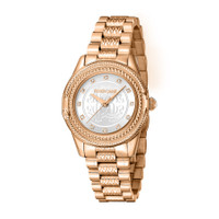 Rose gold-tone stainless steel case and bracelet. Fixed rose gold-tone stainless steel bezel. Silver-tone dial with rose gold-tone hands and index hour markers. Dial Type: Analog. Quartz movement. Scratch resistant mineral crystal. Round case shape, case size: 32 mm. Fold over clasp with a safety release. Water resistant at 50 meters / 165 feet. Functions: hour, minute, second. Fashion Watch Series. Fashion watch style. Roberto Cavalli Fashion Watch Quartz Silver Dial Ladies Watch RC5L063M0075. INFORMATION Brand: Roberto Cavalli Series: Fashion Watch Collection Name: Fashion Watch Gender: Womens Model: RC5L063M0075 Movement: Quartz CASE Case Size: 32 mm Case Material: Stainless Steel Case Shape: Round BAND Band Material: Stainless Steel Band Type: Bracelet Band Color: Rose Gold-tone Clasp: Fold Over with Safety Release DIAL Dial Color: Silver-tone Type: Analog Crystal: Scratch Resistant Mineral Hands: Rose Gold-tone Dial Markers: Index Bezel: Fixed Bezel Color: Rose Gold-tone Bezel Material: Stainless Steel FEATURES Water Resistance: 50 meters / 165 feet Functions: Hour, Minute, Second Watch Features: Stainless Steel, Gold, Analog ADDITIONAL INFO Watch Style: Fashion Warranty: With Manufacturers Guarantee UPC Code: 4894626219573 Jomashop Sku: Y-A4GGT Department: Watches