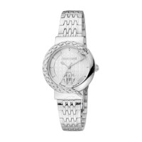 Silver-tone stainless steel case and bracelet. Fixed silver-tone stainless steel bezel. Silver-tone dial with silver-tone hands and index hour markers. Dial Type: Analog. Quartz movement. Scratch resistant sapphire crystal. Round case shape, case size: 30 mm. Fold over clasp with a safety release. Water resistant at 50 meters / 165 feet. Functions: hour, minute, second. Fashion Watch Series. Fashion watch style. Watch label: Swiss Made. Roberto Cavalli Fashion Watch Quartz Silver Dial Ladies Watch RV1L156M1041. INFORMATION Brand: Roberto Cavalli Series: Fashion Watch Collection Name: Fashion Watch Gender: Womens Model: RV1L156M1041 Watch Label: Swiss Made Movement: Quartz CASE Case Size: 30 mm Case Material: Stainless Steel Case Shape: Round BAND Band Material: Stainless Steel Band Type: Bracelet Band Color: Silver-tone Clasp: Fold Over with Safety Release DIAL Dial Color: Silver-tone Type: Analog Crystal: Scratch Resistant Sapphire Hands: Silver-tone Dial Markers: Index Bezel: Fixed Bezel Color: Silver-tone Bezel Material: Stainless Steel FEATURES Water Resistance: 50 meters / 165 feet Functions: Hour, Minute, Second Watch Features: Stainless Steel, Analog ADDITIONAL INFO Watch Style: Fashion Warranty: With Manufacturers Guarantee UPC Code: 4894626179273 Jomashop Sku: Y-A4GKS Department: Watches