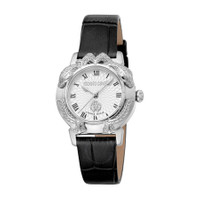 Silver-tone stainless steel case with a black leather strap. Fixed silver-tone stainless steel bezel. Silver-tone dial with silver-tone hands and Roman numeral hour markers. Dial Type: Analog. Quartz movement. Scratch resistant sapphire crystal. Round case shape, case size: 32 mm. Water resistant at 50 meters / 165 feet. Functions: hour, minute, second. Fashion Watch Series. Fashion watch style. Watch label: Swiss Made. Roberto Cavalli Fashion Watch Quartz Silver Dial Ladies Watch RV1L227L0011. INFORMATION Brand: Roberto Cavalli Series: Fashion Watch Collection Name: Fashion Watch Gender: Womens Model: RV1L227L0011 Watch Label: Swiss Made Movement: Quartz CASE Case Size: 32 mm Case Material: Stainless Steel Case Shape: Round BAND Band Material: Leather Band Type: Strap Band Color: Black DIAL Dial Color: Silver-tone Type: Analog Crystal: Scratch Resistant Sapphire Hands: Silver-tone Dial Markers: Roman Numeral Bezel: Fixed Bezel Color: Silver-tone Bezel Material: Stainless Steel FEATURES Water Resistance: 50 meters / 165 feet Functions: Hour, Minute, Second Watch Features: Stainless Steel, Leather, Analog ADDITIONAL INFO Watch Style: Fashion Warranty: With Manufacturers Guarantee UPC Code: 4894626232794 Jomashop Sku: Y-A4GES Department: Watches
