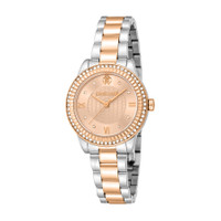 Rose gold-tone stainless steel case with a two-tone (silver-tone and rose gold-tone) stainless steel bracelet. Rose gold-tone stainless steel bezel. Rose gold-tone dial with rose gold-tone hands and Roman numeral hour markers. Dial Type: Analog. Quartz movement. Scratch resistant mineral crystal. Pull / push crown. Solid case back. Round case shape, case size: 30 mm. Fold over clasp with a safety release. Water resistant at 50 meters / 165 feet. Functions: hour, minute, second. Glam Series. Fashion watch style. Roberto Cavalli Glam Rose Gold-tone Dial Ladies Watch RC5L090M0095. GENERAL Box Type: Original Box Brand Type: Designer CASE Case Material: Stainless Steel Case Shape: Round Case Back: Solid BAND Band Material: Stainless Steel Band Type: Bracelet Band Color: Two-tone (Silver-tone and Rose Gold-tone) Clasp: Fold Over with Safety Release DIAL Dial Color: Rose Gold-tone Type: Analog Crystal: Scratch Resistant Mineral Hands: Rose Gold-tone Dial Markers: Roman Numeral Bezel Color: Rose Gold-tone Bezel Material: Stainless Steel Crown: Pull / Push INFORMATION Brand: Roberto Cavalli Series: Glam Collection Name: Glam Gender: Womens Model: RC5L090M0095 Movement: Quartz FEATURES Water Resistance: 50 meters / 165 feet Functions: Hour, Minute, Second Watch Features: Analog, Gold, Stainless Steel ADDITIONAL INFO Watch Style: Fashion Warranty: With Manufacturers Guarantee UPC Code: 4894626249426 Jomashop Sku: Y-A5DLU Department: Watches