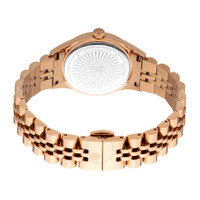 Rose gold-tone stainless steel case and bracelet. Fixed rose gold-tone stainless steel bezel. Silver-tone dial with rose gold-tone hands and Roman numeral hour markers. Dial Type: Analog. Quartz movement. Scratch resistant mineral crystal. Pull / push crown. Solid case back. Round case shape, case size: 31 mm. Fold over clasp with a safety release. Water resistant at 50 meters / 165 feet. Functions: hour, minute, second. Logo Series. Fashion watch style. Roberto Cavalli Logo Silver-tone Dial Ladies Watch RC5L024M1075. GENERAL Box Type: Original Box Brand Type: Designer CASE Case Material: Stainless Steel Case Shape: Round Case Back: Solid BAND Band Material: Stainless Steel Band Type: Bracelet Band Color: Rose Gold-tone Clasp: Fold Over with Safety Release DIAL Dial Color: Silver-tone Type: Analog Crystal: Scratch Resistant Mineral Hands: Rose Gold-tone Dial Markers: Roman Numeral Bezel: Fixed Bezel Color: Rose Gold-tone Bezel Material: Stainless Steel Crown: Pull / Push INFORMATION Brand: Roberto Cavalli Series: Logo Collection Name: Logo Gender: Womens Model: RC5L024M1075 Movement: Quartz FEATURES Water Resistance: 50 meters / 165 feet Functions: Hour, Minute, Second Watch Features: Analog, Gold, Stainless Steel ADDITIONAL INFO Watch Style: Fashion Warranty: With Manufacturers Guarantee UPC Code: 4894626236495 Jomashop Sku: Y-A5DMD Department: Watches