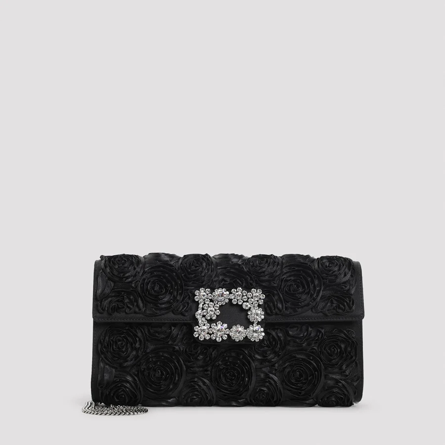 Roger Vivier Ladies Shoulder Bag. SKU: RBWAMFDN200RS0B999 B999 NERO. Color: Black. Roger Vivier Envelope Flap Rose Flower Buckle Shoulder Bag. Roger Vivier Black Satin Envelope Flap Rose Flower Buckle Shoulder Bag. Pure black satin shoulder bag, front flap fastening, front buckle with crystal flower buckle, tonal 3D embellishment roses, silver-tone chain shoulder strap, one main compartment. Silver-tone hardware. GENERAL Color: Black INFORMATION Brand: Roger Vivier Gender: Womens Model: RBWAMFDN200RS0B999 B999 NERO ADDITIONAL INFO Jomashop Sku: Z-UJ989 Department: Bags Category: Shoulder Bag