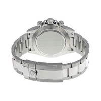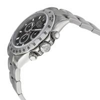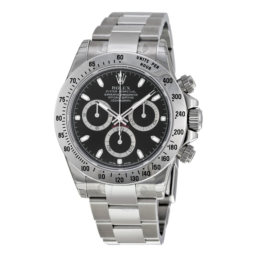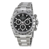 Pre-owned Stainless steel case with a stainless steel rolex oyster bracelet. Fixed stainless steel bezel with engraved tachymeter markings . Black dial with silver-tone hands and stick hour markers. Minute markers around the outer rim. Dial Type: Analog. Luminescent hands and dial markers. Chronograph - three sub-dials displaying: 60 seconds, 30 minutes and 24 hours. Automatic movement with a 72-hour power reserve. Scratch resistant sapphire crystal. Screw down crown. Case diameter: 40 mm. Round case shape. Oyster clasp. Water resistant at 100 meters / 330 feet. Functions: chronograph, hour, minute, second. Luxury watch style. Watch label: Swiss Made. Item Variations: 116520, 116520-BKSO, Rolex-116520, Rolex-116520-BKSO. Rolex Cosmograph Daytona Black Dial Stainless Steel Rolex Oyster Automatic Men's Watch 116520BKSO. GENERAL Preowned Item Condition: Excellent CASE Case Material: Stainless Steel Case Shape: Round Case Back: Solid BAND Band Material: Stainless Steel Rolex Oyster Band Type: Bracelet Band Color: Silver-tone Clasp: Oysterlock DIAL Dial Color: Black Type: Analog Crystal: Scratch Resistant Sapphire Hands: Silver-tone Dial Markers: Stick Hour Markers, Minute Markers around the outer rim Second Markers: Minute Markers Around The Outer Rim Sub Dials: Three - 60 Second, 30 Minute and 24 Hour Luminiscence: Hands and Dial Markers Bezel: Fixed Tachymeter Scale Bezel Color: Silver-tone Bezel Material: Stainless Steel Crown: Screw Down INFORMATION Brand: Rolex Series: Cosmograph Daytona Collection Name: Cosmograph Daytona Gender: Mens Model: 116520BKSO Watch Label: Swiss Made Movement: Automatic Engine: Rolex Calibre 4130 Power Reserve: 72 hours FEATURES Water Resistance: 100 meters / 330 feet Functions: Chronograph, Hour, Minute, Second, Chronometer Watch Features: Chronograph, Stainless Steel, Analog, Chronometer ADDITIONAL INFO Watch Style: Luxury Warranty: 1 Year Jomashop Warranty UPC Code: 845960000277 Jomashop Sku: PRE-P-RLX100749 Department: Watches Category: Watches