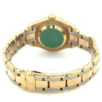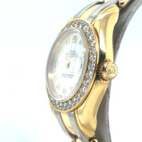 Yellow gold-tone 18kt yellow gold case with a yellow gold-tone 18kt yellow gold pearlmaster bracelet. Fixed yellow gold-tone bezel with diamond set 18kt yellow gold. Mother of pearl dial with yellow gold-tone hands and diamond hour markers. Dial Type: Analog. Luminescent hands. Date display at the 3 o'clock position. Automatic movement. Scratch resistant sapphire crystal. Screw down crown. Solid case back. Round case shape, case size: 29 mm, case thickness: 10 mm. Band width: 15 mm. Crown clasp. Water resistant at 100 meters / 330 feet. Functions: date, hour, minute, second. DatejustA pearlmaster Series. Luxury watch style. Watch label: Swiss Made. Pre-owned Rolex DatejustA Pearlmaster Automatic Diamond Ladies Watch 69298 MDPM. GENERAL Collection Name: DatejustA Pearlmaster INFORMATION Brand: Rolex Series: Datejusta Pearlmaster Model: 69298 MDPM Gender: Womens Watch Label: Swiss Made Movement: Automatic CONDITION INFORMATION Box: No Preowned Item Condition: Excellent Papers: Yes CASE Case Size: 29 Case Thickness: 10 mm Case Material: 18kt Yellow Gold Case Shape: Round Case Back: Solid DIAL Type: Analog Dial Color: Mother of Pearl Crystal: Scratch Resistant Sapphire Hands: Yellow Gold-tone Dial Markers: Diamond Luminiscence: Hands Bezel: Fixed Bezel Color: Yellow Gold-tone Bezel Material: Diamond Set 18kt Yellow Gold Crown: Screw Down BAND Band Type: Bracelet Band Material: 18kt Yellow Gold Pearlmaster Band Color: Yellow Gold-tone Band Width: 15 mm Clasp: Crownclasp FEATURES Water Resistance: 100 meters / 330 feet Calendar: Date display at the 3 o'clock position Functions: Date, Hour, Minute, Second Watch Features: Diamond, Gold, Analog ADDITIONAL INFO Watch Style: Luxury Warranty: 1 Year Jomashop Warranty Jomashop Sku: PRE-P-RLX89013 Department: Watches