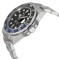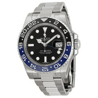 Pre-owned Silver-tone stainless steel case with a silver-tone stainless steel oyster bracelet. Bi-directional rotating with GMT markings blue and black (Batman) stainless steel and ceramic bezel. Black dial with luminous Mercedes-logo, sword, and Breguet-style shape hands and dot hour markers. Minute markers around the outer rim. Dial Type: Analog. Luminescent superluminova luminescent. Date display at the 3 o'clock position. Rolex Calibre 3186 automatic movement with a 50-hour power reserve. Scratch resistant sapphire crystal. Screw locked crown. Solid case back. Round case shape. Case size: 40 mm. Band length: 8 inches. Oysterlock clasp. Water resistant at 100 meters / 330 feet. Functions: GMT, second time zone, date, hour, minute, second, chronometer. Dress watch style. Watch label: Swiss Made. Item Variations: BATMAN. Rolex GMT Master II Black Dial Batman Bezel Men's Watch 116710BLNR. GENERAL Preowned Item Condition: Excellent CASE Case Material: Stainless Steel Case Shape: Round Case Back: Solid BAND Band Material: Stainless Steel Oyster Band Type: Bracelet Band Color: Silver-tone Clasp: Oysterlock DIAL Dial Color: Black Type: Analog Crystal: Scratch Resistant Sapphire Hands: Luminous Mercedes-logo, sword, and Breguet-style shape Dial Markers: Dot Second Markers: Minute Markers around the outer rim Luminiscence: SuperLuminova luminescent Bezel: Bi-directional rotating with GMT markings Bezel Color: Black and Blue (Batman) Bezel Material: Stainless Steel and Ceramic Crown: Screw Locked INFORMATION Brand: Rolex Series: Gmt Master Ii Collection Name: Gmt-Master Ii Gender: Mens Model: 116710BLNR Watch Label: Swiss Made Movement: Automatic Engine: Rolex Calibre 3186 Power Reserve: 50 hours FEATURES Water Resistance: 100 meters / 330 feet Calendar: Date display at the 3 o'clock position Functions: GMT, Second Time Zone, Date, Hour, Minute, Second, Chronometer Watch Features: Analog, GMT, Chronometer, Ceramic, Stainless Steel, Time Zone ADDITIONAL INFO Watch Style: Dress Warranty: 1 Year Jomashop Warranty UPC Code: 845960048538 Jomashop Sku: PRE-P-RLX100692 Department: Watches Category: Watches