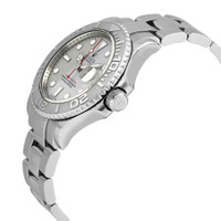 Silver-tone stainless steel case with a two-tone (silver-tone and white) stainless steel and platinum oyster bracelet. Bi-directional rotating time-lapse white platinum bezel. Grey dial with silver-tone Mercedes-logo, sword, and Breguet-style shape hands and index hour markers. Minute markers around the outer rim. Dial Type: Analog. Luminescent hands and markers. Date display at the 3 o'clock position. Rolex Calibre 3135 Automatic movement, containing 31 Jewels, bitting at 28800 vph, and has a power reserve of approximately 48 hours. Scratch resistant synthetic sapphire crystal. Screw down crown. Solid case back. Round case shape, case size: 40 mm. Band length: 7 inches. Deployment clasp. Water resistant at 100 meters / 330 feet. Functions: date, hour, minute, second, chronometer. Yacht-master Series. Luxury watch style. Watch label: Swiss Made. Pre-owned Rolex Oyster Perpetual Yacht-Master Steel with Platinum Men's Watch 16622. GENERAL Collection Name: Yacht-Master INFORMATION Brand: Rolex Series: Yacht-Master Model: 16622 Gender: Mens Watch Label: Swiss Made Movement: Automatic Engine: Rolex Calibre 3135 Power Reserve: 50 hours CONDITION INFORMATION Box: No Preowned Item Condition: Excellent Papers: No CASE Case Size: 40 mm Case Material: Stainless Steel Case Shape: Round Case Back: Solid DIAL Type: Analog Dial Color: Grey Crystal: Synthetic Sapphire Hands: Silver-tone Mercedes-logo, sword, and Breguet-style shape Second Markers: Minute Markers around the outer rim Dial Markers: Index Luminiscence: Hands and Markers Bezel: Bi-directional Rotating Time-Lapse Bezel Color: White Bezel Material: Platinum Crown: Screw Down BAND Band Type: Bracelet Band Material: Stainless Steel and Platinum Oyster Band Color: Two-tone (Silver-tone and White) Band Length: 7 inches Clasp: Deployment FEATURES Water Resistance: 100 meters / 330 feet Calendar: Date display at the 3 o'clock position Functions: Date, Hour, Minute, Second, Chronometer Watch Features: Analog, Platinum, Chronometer, Perpetual, Stainless Steel ADDITIONAL INFO Watch Style: Luxury Warranty: 1 Year Jomashop Warranty Jomashop Sku: PRE-RLX16622-2 Department: Watches Category: Watches