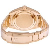 Pre-owned 18kt everose gold case with a 18kt everose gold bracelet. Bi-directional rotating ring command 18kt everose gold bezel. Sundust dial with luminous hands and Roman numeral hour markers. Minute markers around the outer rim. Dial Type: Analog. Date display at the 3 o'clock position. 24 hour (GMT) subdials. Rolex Calibre 9001 automatic movement with a 72-hour power reserve. Scratch resistant sapphire crystal. Screw down crown. Solid case back. Round case shape. Case size: 42 mm. Fold over oysterlock clasp. Water resistant at 100 meters / 330 feet. Functions: annual calendar, GMT, second time zone, month, date, hour, minute, second, chronometer. Luxury watch style. Watch label: Swiss Made. Item Variations: 326935-72415. Rolex Sky Dweller Sundust Dial 18kt Everose Gold Men's Watch 326935. GENERAL Preowned Item Condition: Excellent CASE Case Material: 18kt Everose Gold Case Shape: Round Case Back: Solid BAND Band Material: 18kt Everose Gold Band Type: Bracelet Clasp: Fold Over Oysterlock DIAL Dial Color: Sundust Type: Analog Crystal: Scratch Resistant Sapphire Hands: Luminous Dial Markers: Roman Numeral Second Markers: Minute Markers around the outer rim Sub Dials: One - 24 Hour Bezel: Bi-directional Rotating Ring Command Bezel Material: 18kt Everose Gold Crown: Screw Down INFORMATION Brand: Rolex Series: Sky-Dweller Collection Name: Sky Dweller Gender: Mens Model: 326935 Watch Label: Swiss Made Movement: Automatic Engine: Rolex Calibre 9001 Power Reserve: 72 hours FEATURES Water Resistance: 100 meters / 330 feet Calendar: Date display at the 3 o'clock position Functions: Annual Calendar, Month, Date, GMT, Second Time Zone, Hour, Minute, Second, Chronometer Watch Features: Analog, GMT, Annual Calendar, Chronometer, Month, Gold, Time Zone ADDITIONAL INFO Watch Style: Luxury Warranty: 1 Year Jomashop Warranty UPC Code: 799475683121 Jomashop Sku: PRE-P-RLX100695 Department: Watches Category: Watches