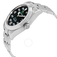 Stainless steel case with a stainless steel bracelet. Fixed stainless steel bezel. Black dial with luminous silver-tone Mercedes-logo, sword, and Breguet-style shape hands and index hour markers. Arabic numeral hour markers at the 3, 6 and 9 o'clock positions. Arabic numeral minute markers (at 5 minute intervals). Minute markers around the outer rim. Dial Type: Analog. Rolex calibre 3131 automatic movement with a 48-hour power reserve. Scratch resistant sapphire crystal. Screw down crown. Solid case back. Round case shape. Case size: 40 mm. Oysterlock clasp. Water resistant at 100 meters / 330 feet. Functions: hour, minute, second, chronometer. Luxury watch style. Watch label: Swiss Made. Rolex Air King Black Dial Stainless Steel Men's Watch 116900BKAO. CASE Case Size: 40 mm Case Color: Silver-Tone Case Material: Stainless Steel Case Shape: Round Case Back: Solid BAND Band Material: Stainless Steel Band Type: Bracelet Band Color: Silver-tone Clasp: Oysterlock DIAL Dial Color: Black Type: Analog Crystal: Scratch Resistant Sapphire Hands: Luminous Silver-tone Mercedes-logo, sword, and Breguet-style shape Dial Markers: Arabic Numeral Second Markers: Arabic Numerals mark the 3, 6 and 9 o'clock positions. Minute Markers around the outer rim Bezel: Fixed Smooth Bezel Color: Silver-tone Bezel Material: Stainless Steel Crown: Screw Down INFORMATION Brand: Rolex Series: Air-King Collection Name: Air-King Gender: Mens Model: 116900 Watch Label: Swiss Made Movement: Automatic Engine: Rolex Calibre 3131 Power Reserve: 48 hours FEATURES Water Resistance: 100 meters / 330 feet Functions: Hour, Minute, Second, Chronometer Watch Features: Stainless Steel, Chronometer, Analog ADDITIONAL INFO Watch Style: Luxury Warranty: 2 Year Jomashop Warranty UPC Code: 842047102947 Jomashop Sku: RLX116900BKAO Department: Watches Category: Watches