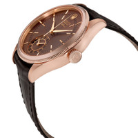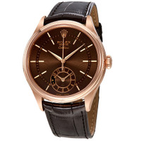 Rose gold-tone 18kt everose gold case with a brown leather strap. Fixed domed and fluted rose gold-tone 18kt everose gold bezel. Brown guilloche dial with everose gold alpha-style shape hands and index hour markers. Minute markers. Dial Type: Analog. One subdial displaying: 12 hour with day/night indicator. Rolex Calibre 3180 Automatic movement, based upon Rolex 3130, containing 31 Jewels, bitting at 28800 vph, and has a power reserve of approximately 48 hours. Scratch resistant sapphire crystal. Screw down crown. Solid case back. Round case shape, case size: 39 mm. Tang clasp. Water resistant at 50 meters / 165 feet. Functions: GMT, second time zone, hour, minute, second, day/night indicator, chronometer. Cellini Series. Luxury watch style. Watch label: Swiss Made. Rolex Cellini Brown Guilloche Dial Automatic Men's 18K Everose Gold Leather Watch 50525BRSBRL. CASE Case Size: 39 Case Color: Rose Gold-Tone Case Material: 18kt Everose Gold Case Shape: Round Case Back: Solid BAND Band Material: Leather Band Type: Strap Band Color: Brown Clasp: Tang DIAL Dial Color: Brown Guilloche Type: Analog Crystal: Scratch Resistant Sapphire Hands: Everose Gold Alpha-style shape Dial Markers: Index Second Markers: Minute Markers Sub Dials: One - 12 hour with Day/Night Indicator Bezel: Fixed Domed and Fluted Bezel Color: Rose Gold-tone Bezel Material: 18kt Everose Gold Crown: Screw Down INFORMATION Brand: Rolex Series: Cellini Collection Name: Cellini Gender: Mens Model: 50525BRSBRL Watch Label: Swiss Made Movement: Automatic Engine: Rolex Calibre 3180 Power Reserve: 48 hours FEATURES Water Resistance: 50 meters / 165 feet Functions: GMT, Second Time Zone, Hour, Minute, Second, Day/Night Indicator, Chronometer Watch Features: Analog, GMT, Day/Night Indicator, Chronometer, Gold, Leather, Time Zone ADDITIONAL INFO Watch Style: Luxury Warranty: 2 Year Jomashop Warranty UPC Code: 842047118191 Jomashop Sku: RLX50525BRSBRL Department: Watches Category: Watches
