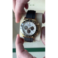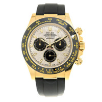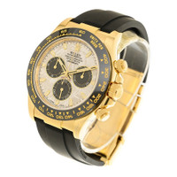 18kt yellow gold case with a black rubber strap. Fixed tachymeter scale black ceramic bezel. Meteorite and black dial with yellow gold hands and index hour markers. Minute markers around the outer rim. Dial Type: Analog. Luminescent hands and markers. Chronograph - three sub-dials displaying: 60 second, 30 minute and 12 hour. Rolex Calibre 4130 Automatic movement, based upon Rolex 4030, containing 44 Jewels, bitting at 28800 vph, and has a power reserve of approximately 72 hours. Scratch resistant sapphire crystal. Screw down crown. Solid case back. Round case shape, case size: 40 mm. Oysterlock clasp. Water resistant at 100 meters / 330 feet. Functions: chronograph, hour, minute, small second, chronometer. Cosmograph Daytona Series. Luxury watch style. Watch label: Swiss Made. Item Variations: M116518LN-0076. Rolex Cosmograph Daytona Chronograph Automatic Chronometer Men's Watch 116518LN. INFORMATION Brand: Rolex Series: Cosmograph Daytona Collection Name: Cosmograph Daytona Gender: Mens Model: 116518LN Watch Label: Swiss Made Movement: Automatic Engine: Rolex Calibre 4130 Power Reserve: 72 hours CASE Case Size: 40 mm Case Material: 18kt Yellow Gold Case Shape: Round Case Back: Solid BAND Band Material: Rubber Band Type: Strap Band Color: Black Clasp: Oysterlock DIAL Dial Color: Meteorite And Black Type: Analog Crystal: Scratch Resistant Sapphire Hands: Yellow Gold Dial Markers: Index Second Markers: Minute Markers around the outer rim Sub Dials: Three - 60 Second, 30 Minute and 12 Hour Luminiscence: Hands and Markers Bezel: Fixed Tachymeter Scale Bezel Color: Black Bezel Material: Ceramic Crown: Screw Down FEATURES Water Resistance: 100 meters / 330 feet Functions: Chronograph, Hour, Minute, Small Second, Chronometer Watch Features: Analog, Chronometer, Ceramic, Gold, Rubber, Chronograph ADDITIONAL INFO Watch Style: Luxury Warranty: 2 Year Jomashop Warranty Jomashop Sku: RLX116518LNMTSR Item Variation: M116518LN-0076 Department: Watches Category: Watches