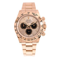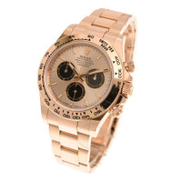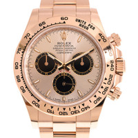 18kt everose gold case with a 18kt everose gold oyster bracelet. Fixed tachymeter scale 18kt everose gold bezel. Sundust dial with everose gold hands and index hour markers. Minute markers around the outer rim. Dial Type: Analog. Luminescent hands and markers. Chronograph - three sub-dials displaying: 60 second, 30 minute and 12 hour. Rolex Calibre 4131 Automatic movement, based upon Rolex Calibre 4130, containing 47 Jewels, bitting at 28800 vph, and has a power reserve of approximately 72 hours. Scratch resistant sapphire crystal. Screw down crown. Solid case back. Round case shape, case size: 40 mm. Oysterlock clasp. Water resistant at 100 meters / 330 feet. Functions: chronograph, hour, minute, small second, chronometer. Cosmograph Daytona Series. Luxury watch style. Watch label: Swiss Made. Item Variations: M126505-0003. Rolex Cosmograph Daytona Chronograph Automatic Chronometer Men's Watch 126505-0003. CASE Case Size: 40 Case Material: 18kt Everose Gold Case Shape: Round Case Back: Solid BAND Band Material: 18kt Everose Gold Oyster Band Type: Bracelet Band Color: Rose Gold-tone Clasp: Oysterlock DIAL Dial Color: Sundust Type: Analog Crystal: Scratch Resistant Sapphire Hands: Everose Gold Dial Markers: Index Second Markers: Minute Markers around the outer rim Sub Dials: Three - 60 Second, 30 Minute and 12 Hour Luminiscence: Hands and Markers Bezel: Fixed Tachymeter Scale Bezel Color: Rose Gold-tone Bezel Material: 18kt Everose Gold Crown: Screw Down INFORMATION Brand: Rolex Series: Cosmograph Daytona Collection Name: Cosmograph Daytona Gender: Mens Model: 126505-0003 Watch Label: Swiss Made Movement: Automatic Engine: Rolex Calibre 4131 Power Reserve: 72 hours FEATURES Water Resistance: 100 meters / 330 feet Functions: Chronograph, Hour, Minute, Small Second, Chronometer Watch Features: Chronograph, Gold, Chronometer, Analog ADDITIONAL INFO Watch Style: Luxury Warranty: 2 Year Jomashop Warranty Jomashop Sku: RLX126505-0003 Item Variation: M126505-0003 Department: Watches Category: Watches