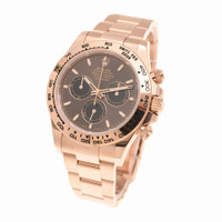 Rose gold-tone 18kt rose gold case with a rose gold-tone 18kt rose gold oyster bracelet. Fixed tachymeter scale rose gold-tone 18kt rose gold bezel. Chocolate dial with rose gold-tone hands and index hour markers. Minute markers around the outer rim. Dial Type: Analog. Luminescent hands and markers. Chronograph - three sub-dials displaying: 60 second, 30 minute and 12 hour. Rolex Calibre 4131 Automatic movement, based upon Rolex Calibre 4130, containing 47 Jewels, bitting at 28800 vph, and has a power reserve of approximately 72 hours. Scratch resistant sapphire crystal. Screw down crown. Solid case back. Round case shape, case size: 40 mm. Fold over clasp with a safety release. Water resistant at 100 meters / 330 feet. Functions: chronograph, hour, minute, small second, chronometer. Cosmograph Daytona Series. Luxury watch style. Watch label: Swiss Made. Rolex Cosmograph Daytona Chronograph Automatic Chronometer Men's Watch m126505-0005. GENERAL Box Type: Original Box CASE Case Diameter: 40 mm Case Material: 18kt Rose Gold Case Shape: Round Case Back: Solid BAND Band Material: 18kt Rose Gold Oyster Band Type: Bracelet Band Color: Rose Gold-tone Clasp: Fold Over with Safety Release DIAL Dial Color: Chocolate Type: Analog Crystal: Scratch Resistant Sapphire Hands: Rose Gold-tone Dial Markers: Index Second Markers: Minute Markers around the outer rim Sub Dials: Three - 60 Second, 30 Minute and 12 Hour Luminiscence: Hands and Markers Bezel: Fixed Tachymeter Scale Bezel Color: Rose Gold-tone Bezel Material: 18kt Rose Gold Crown: Screw Down INFORMATION Brand: Rolex Series: Cosmograph Daytona Collection Name: Cosmograph Daytona Gender: Mens Model: 126505-0005 Watch Label: Swiss Made Movement: Automatic Engine: Rolex Calibre 4131 Power Reserve: 72 hours FEATURES Water Resistance: 100 meters / 330 feet Functions: Chronograph, Hour, Minute, Small Second, Chronometer Watch Features: Analog, Chronometer, Gold, Chronograph ADDITIONAL INFO Watch Style: Luxury Warranty: 2 Year Jomashop Warranty Jomashop Sku: RLXM1265050005 Item Variation: M126505-0005 Department: Watches