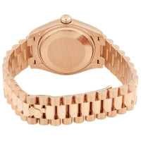 18kt everose gold case with a 18kt everose gold president bracelet. Fixed fluted 18kt everose gold bezel. Silver dial with everose gold hands and diamond hour markers. Dial Type: Analog. Date display at the 3 o'clock position. Rolex Calibre 2236 Automatic movement, based upon Rolex 2235, containing 31 Jewels, bitting at 28800 vph, and has a power reserve of approximately 55 hours. Scratch resistant sapphire crystal. Screw down crown. Solid case back. Round case shape, case size: 31 mm. Crown clasp. Water resistant at 100 meters / 330 feet. Functions: date, hour, minute, second, chronometer. Datejust 31 Series. Luxury watch style. Watch label: Swiss Made. Item Variations: M278275-0039. Rolex Datejust 31 Automatic 18kt Everose Gold Diamond Silver Dial Ladies Watch 278275-0039. INFORMATION Brand: Rolex Series: Datejust Collection Name: Datejust Gender: Womens Model: 278275-0039 Watch Label: Swiss Made Movement: Automatic Engine: Rolex Calibre 2236 Power Reserve: 55 hours CASE Case Size: 31 mm Case Material: 18kt Everose Gold Case Shape: Round Case Back: Solid BAND Band Material: 18kt Everose Gold President Band Type: Bracelet Clasp: Crownclasp DIAL Dial Color: Silver Type: Analog Crystal: Scratch Resistant Sapphire Hands: Everose Gold Dial Markers: Diamond Bezel: Fixed Fluted Bezel Material: 18kt Everose Gold Crown: Screw Down FEATURES Water Resistance: 100 meters / 330 feet Calendar: Date display at the 3 o'clock position Functions: Date, Hour, Minute, Second, Chronometer Watch Features: Diamond, Gold, Chronometer, Analog ADDITIONAL INFO Watch Style: Luxury Warranty: 2 Year Jomashop Warranty Jomashop Sku: RLX278275SDJ Item Variation: M278275-0039 Department: Watches Category: Watches