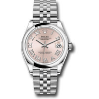 Silver-tone stainless steel case with a silver-tone stainless steel rolex jubilee bracelet. Silver-tone stainless steel bezel. Pink dial with silver-tone hands and Roman numeral hour markers. Dial Type: Analog. Date display at the 3 o'clock position. Rolex Calibre 2236 Automatic movement, based upon Rolex 2235, containing 31 Jewels, bitting at 28800 vph, and has a power reserve of approximately 55 hours. Scratch resistant sapphire crystal. Screw down crown. Screw-down case back. Round case shape, case size: 31 mm. Folding clasp. Water resistant at 100 meters / 330 feet. Functions: date, hour, minute, second. Datejust 31 Series. Watch label: Swiss Made. Rolex Datejust 31 Automatic Pink Dial Ladies Watch 278240PRJ. CASE Case Size: 31 Case Material: Stainless Steel Case Shape: Round Case Back: Screw-down BAND Band Material: Stainless Steel Rolex Jubilee Band Type: Bracelet Band Color: Silver-tone Clasp: Folding DIAL Dial Color: Pink Type: Analog Crystal: Scratch Resistant Sapphire Hands: Silver-tone Dial Markers: Roman Numeral Bezel Color: Silver-tone Bezel Material: Stainless Steel Crown: Screw Down INFORMATION Brand: Rolex Series: Datejust Collection Name: Datejust Gender: Womens Model: 278240PRJ Watch Label: Swiss Made Movement: Automatic Engine: Rolex Calibre 2236 Power Reserve: 55 hours FEATURES Water Resistance: 100 meters / 330 feet Calendar: Date display at the 3 o'clock position Functions: Date, Hour, Minute, Second Watch Features: Stainless Steel, Analog ADDITIONAL INFO Watch Style: Luxury Warranty: 2 Year Jomashop Warranty Jomashop Sku: RLX278240PRJ Item Variation: M278240-0014 Department: Watches Category: Watches