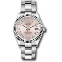 Silver-tone stainless steel/18k white gold case with a silver-tone stainless steel rolex oyster bracelet. Silver-tone stainless steel bezel. Pink dial with silver-tone hands and Roman numeral hour markers. Dial Type: Analog. Date display at the 3 o'clock position. Rolex Calibre 2236 Automatic movement, based upon Rolex 2235, containing 31 Jewels, bitting at 28800 vph, and has a power reserve of approximately 55 hours. Scratch resistant sapphire crystal. Screw-down crown. Screw-down case back. Round case shape, case size: 31 mm. Folding clasp. Water resistant at 100 meters / 330 feet. Functions: date, hour, minute, second. Datejust 31 Series. Watch label: Swiss Made. Rolex Datejust 31 Automatic Pink Dial Ladies Watch 278274PRO. CASE Case Size: 31 Case Material: Stainless Steel/18k White Gold Case Shape: Round Case Back: Screw-down BAND Band Material: Stainless Steel Rolex Oyster Band Type: Bracelet Band Color: Silver-tone Clasp: Folding DIAL Dial Color: Pink Type: Analog Crystal: Scratch Resistant Sapphire Hands: Silver-tone Dial Markers: Roman Numeral Bezel Color: Silver-tone Bezel Material: Stainless Steel Crown: Screw-down INFORMATION Brand: Rolex Series: Datejust Collection Name: Datejust Gender: Womens Model: 278274PRO Watch Label: Swiss Made Movement: Automatic Engine: Rolex Calibre 2236 Power Reserve: 55 hours FEATURES Water Resistance: 100 meters / 330 feet Calendar: Date display at the 3 o'clock position Functions: Date, Hour, Minute, Second Watch Features: Analog, Gold, Stainless Steel ADDITIONAL INFO Watch Style: Luxury Warranty: 2 Year Jomashop Warranty Jomashop Sku: RLX278274PRO Department: Watches Category: Watches