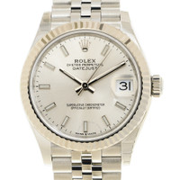 Silver-tone stainless steel/18k white gold case with a silver-tone stainless steel rolex jubilee bracelet. Silver-tone stainless steel bezel. Silver dial with silver-tone hands and index hour markers. Dial Type: Analog. Luminescent hands and markers. Date display at the 3 o'clock position. Rolex Calibre 2236 Automatic movement, based upon Rolex 2235, containing 31 Jewels, bitting at 28800 vph, and has a power reserve of approximately 55 hours. Scratch resistant sapphire crystal. Screw down crown. Screw down case back. Round case shape, case size: 31 mm. Folding clasp. Water resistant at 100 meters / 330 feet. Functions: date, hour, minute, second. Datejust 31 Series. Watch label: Swiss Made. Rolex Datejust 31 Automatic Silver Dial Ladies Watch 278274SSJ. CASE Case Size: 31 Case Material: Stainless Steel/18k White Gold Case Shape: Round Case Back: Screw Down BAND Band Material: Stainless Steel Rolex Jubilee Band Type: Bracelet Band Color: Silver-tone Clasp: Folding DIAL Dial Color: Silver Type: Analog Crystal: Scratch Resistant Sapphire Hands: Silver-tone Dial Markers: Index Luminiscence: Hands and Markers Bezel Color: Silver-tone Bezel Material: Stainless Steel Crown: Screw Down INFORMATION Brand: Rolex Series: Datejust Collection Name: Datejust Gender: Womens Model: 278274SSJ Watch Label: Swiss Made Movement: Automatic Engine: Rolex Calibre 2236 Power Reserve: 55 hours FEATURES Water Resistance: 100 meters / 330 feet Calendar: Date display at the 3 o'clock position Functions: Date, Hour, Minute, Second Watch Features: Stainless Steel, Gold, Analog ADDITIONAL INFO Watch Style: Luxury Warranty: 2 Year Jomashop Warranty Jomashop Sku: RLX278274SSJ Department: Watches Category: Watches