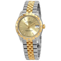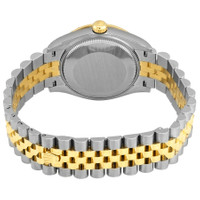 Stainless steel case with a stainless steel jubilee bracelet with 18kt yellow gold center links. Fixed 18kt yellow gold bezel set with diamonds. Champagne dial with luminous yellow gold hands and index hour markers. Minute markers around the outer rim. Dial Type: Analog. Luminescent hands. Date display at the 3 o'clock position. Rolex calibre 2236 automatic movement, based upon Rolex 2235, containing 31 Jewels, bitting at 28800 vph, and has a power reserve of approximately 55 hours. Scratch resistant sapphire crystal. Screw down crown. Solid case back. Round case shape. Case size: 31 mm. Fold over oyster clasp. Water resistant at 100 meters / 330 feet. Functions: date, hour, minute, second, chronometer. Datejust 31 Series. Luxury watch style. Watch label: Swiss Made. Rolex Datejust 31 Champagne Dial Automatic Ladies Steel and 18kt Yellow Gold Jubilee Watch 278343CSJ. INFORMATION Brand: Rolex Series: Datejust Collection Name: Datejust Gender: Womens Model: 278343CSJ Watch Label: Swiss Made Movement: Automatic Engine: Rolex Calibre 2236 Power Reserve: 55 hours CASE Case Size: 31 mm Case Color: Two-Tone (Silver-Tone And Gold-Tone) Case Material: Stainless Steel Case Shape: Round Case Back: Solid BAND Band Material: Stainless Steel and 18kt Yellow Gold Jubilee Band Type: Bracelet Band Color: Two-tone (Silver-tone and Gold-tone) Clasp: Fold Over Oyster DIAL Dial Color: Champagne Type: Analog Crystal: Scratch Resistant Sapphire Hands: Luminous Yellow Gold Dial Markers: Index Second Markers: Minute Markers around the outer rim Luminiscence: Hands Bezel: Fixed Bezel Color: 18kt Yellow Gold Bezel Material: 18kt Yellow Gold set with Diamonds Crown: Screw Down FEATURES Water Resistance: 100 meters / 330 feet Calendar: Date display at the 3 o'clock position Functions: Date, Hour, Minute, Second, Chronometer Watch Features: Diamond, Stainless Steel, Gold, Chronometer, Analog ADDITIONAL INFO Watch Style: Luxury Warranty: 2 Year Jomashop Warranty Jomashop Sku: RLX278343CSJ Department: Watches Category: Watches