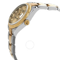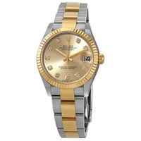 Stainless steel case with a stainless steel oyster bracelet with 18kt yellow gold center links. Fixed fluted 18kt yellow gold bezel. Champagne dial with yellow gold hands and diamond hour markers. Dial Type: Analog. Date display at the 3 o'clock position. Rolex calibre 2236 automatic movement, based upon Rolex 2235, containing 31 Jewels, bitting at 28800 vph, and has a power reserve of approximately 55 hours. Scratch resistant sapphire crystal. Screw down crown. Solid case back. Round case shape. Case size: 31 mm. Fold over clasp. Water resistant at 100 meters / 330 feet. Functions: date, hour, minute, second. Datejust 31 Series. Luxury watch style. Watch label: Swiss Made. Rolex Datejust 31 Champagne Diamond Dial Automatic Ladies Steel and 18kt Yellow Gold Oyster Watch 278273CDO. INFORMATION Brand: Rolex Series: Datejust Collection Name: Datejust Gender: Womens Model: 278273CDO Watch Label: Swiss Made Movement: Automatic Engine: Rolex Calibre 2236 Power Reserve: 55 hours CASE Case Size: 31 mm Case Material: Stainless Steel Case Shape: Round Case Back: Solid BAND Band Material: Stainless Steel with 18kt Yellow Gold Oyster Band Type: Bracelet Band Color: Silver-tone Clasp: Fold Over DIAL Dial Color: Champagne Type: Analog Crystal: Scratch Resistant Sapphire Hands: Yellow Gold Dial Markers: Diamond Bezel: Fixed Fluted Bezel Material: 18kt Yellow Gold Crown: Screw Down FEATURES Water Resistance: 100 meters / 330 feet Calendar: Date display at the 3 o'clock position Functions: Date, Hour, Minute, Second Watch Features: Diamond, Stainless Steel, Gold, Analog ADDITIONAL INFO Watch Style: Luxury Warranty: 2 Year Jomashop Warranty Jomashop Sku: RLX278273CDO Department: Watches Category: Watches