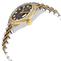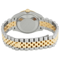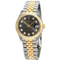 Stainless steel case with a stainless steel Rolex jubilee bracelet with 18kt yellow gold center links. Fixed 18kt yellow gold bezel set with diamondsl. Dark grey dial with yellow gold hands and diamond hour markers. Dial Type: Analog. Date display at the 3 o'clock position. Rolex calibre 2236 automatic movement, based upon Rolex 2235, containing 31 Jewels, bitting at 28800 vph, and has a power reserve of approximately 55 hours. Scratch resistant sapphire crystal. Screw down crown. Solid case back. Round case shape. Case size: 31 mm. Folding oyster clasp. Water resistant at 100 meters / 330 feet. Functions: date, hour, minute, second, chronometer. Luxury watch style. Watch label: Swiss Made. Rolex Datejust 31 Dark Grey Diamond Dial Automatic Ladies Steel and 18kt Yellow Gold Jubilee Watch 278343DGYDJ. INFORMATION Brand: Rolex Series: Datejust Collection Name: Datejust Gender: Womens Model: 278343DGYDJ Watch Label: Swiss Made Movement: Automatic Engine: Rolex Calibre 2236 Power Reserve: 55 hours CASE Case Size: 31 mm Case Color: Two-Tone (Silver-Tone And Gold-Tone) Case Material: Stainless Steel Case Shape: Round Case Back: Solid BAND Band Material: Stainless Steel and 18kt Yellow Gold Jubilee Band Type: Bracelet Band Color: Silver-tone Clasp: Folding Oyster DIAL Dial Color: Dark Grey Type: Analog Crystal: Scratch Resistant Sapphire Hands: Yellow Gold Dial Markers: Diamond Bezel: Fixed Bezel Color: 18kt Yellow Gold Bezel Material: 18kt Yellow Gold set with Diamonds Crown: Screw Down FEATURES Water Resistance: 100 meters / 330 feet Calendar: Date display at the 3 o'clock position Functions: Date, Hour, Minute, Second, Chronometer Watch Features: Diamond, Stainless Steel, Gold, Chronometer, Analog ADDITIONAL INFO Watch Style: Luxury Warranty: 2 Year Jomashop Warranty UPC Code: 842047181751 Jomashop Sku: RLX278343DGYDJ Department: Watches Category: Watches