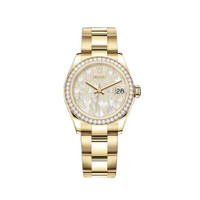 18kt yellow gold case with a 18kt yellow gold rolex oyster bracelet. Fixed-diamond set bezel. Diamond pave, mother of pearl butterfly dial with yellow gold hands. Dial Type: Analog. Date display at the 3 o'clock position. Rolex Calibre 2236 automatic movement with a 55-hour power reserve. Scratch resistant sapphire crystal. Screw down crown. Solid case back. Round case shape. Case size: 31 mm. Water resistant at 100 meters / 330 feet. Functions: date, hour, minute, second. Luxury watch style. Watch label: Swiss Made. Rolex Datejust 31 Diamond Pave, Mother of Pearl Butterfly Dial Ladies 18kt Yellow Gold Oyster Watch 278288PAVEO. INFORMATION Brand: Rolex Series: Datejust Collection Name: Datejust Gender: Womens Model: 278288PAVEO Watch Label: Swiss Made Movement: Automatic Engine: Rolex Calibre 2236 Power Reserve: 55 hours CASE Case Size: 31 mm Case Material: 18kt Yellow Gold Case Shape: Round Case Back: Solid BAND Band Material: 18kt Yellow Gold Rolex Oyster Band Type: Bracelet DIAL Dial Color: Diamond Pave, Mother of Pearl Butterfly Type: Analog Crystal: Scratch Resistant Sapphire Hands: Yellow Gold Bezel: Fixed Bezel Color: 18kt Yellow Gold Bezel Material: Diamond Set Crown: Screw Down FEATURES Water Resistance: 100 meters / 330 feet Calendar: Date display at the 3 o'clock position Functions: Date, Hour, Minute, Second Watch Features: Diamond, Gold, Analog ADDITIONAL INFO Watch Style: Luxury Warranty: 2 Year Jomashop Warranty Jomashop Sku: RLX278288PAVEO Department: Watches Category: Watches