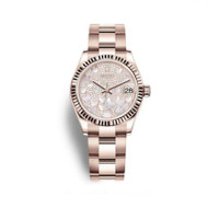 18kt everose gold case with a 18kt everose gold rolex oyster bracelet. Fixed- fluted 18kt everose gold bezel. Diamond pave, mother of pearl butterfly dial with everose gold hands. Dial Type: Analog. Date display at the 3 o'clock position. Rolex Calibre 2236 automatic movement with a 55-hour power reserve. Scratch resistant sapphire crystal. Screw down crown. Solid case back. Round case shape. Case size: 31 mm. Folding clasp. Water resistant at 100 meters / 330 feet. Functions: date, hour, minute, second. Additional Info: dial paved with 262 diamonds. Luxury watch style. Watch label: Swiss Made. Rolex Datejust 31 Mother of Pearl Butterfly Diamond Pave Dial Ladies 18kt Everose Gold Oyster Watch 278275PAVEO. INFORMATION Brand: Rolex Series: Datejust Collection Name: Datejust Gender: Womens Model: 278275PAVEO Watch Label: Swiss Made Movement: Automatic Engine: Rolex Calibre 2236 Power Reserve: 55 hours CASE Case Size: 31 mm Case Material: 18kt Everose Gold Case Shape: Round Case Back: Solid BAND Band Material: 18kt Everose Gold Rolex Oyster Band Type: Bracelet Clasp: Folding DIAL Dial Color: Diamond Pave, Mother of Pearl Butterfly Type: Analog Crystal: Scratch Resistant Sapphire Hands: Everose Gold Bezel: Fixed Fluted Bezel Material: 18kt Everose Gold Crown: Screw Down FEATURES Water Resistance: 100 meters / 330 feet Calendar: Date display at the 3 o'clock position Functions: Date, Hour, Minute, Second Watch Features: Diamond, Gold, Analog ADDITIONAL INFO Watch Style: Luxury Warranty: 2 Year Jomashop Warranty Additional Info: dial paved with 262 diamonds Jomashop Sku: RLX278275PAVEO Department: Watches Category: Watches