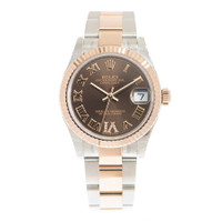 Stainless steel and 18kt everose gold case with a stainless steel and 18kt everose gold oyster bracelet. Fixed- fluted bezel. Rhodium dial with everose gold hands and Roman- diamond numeral hour markers. Dial Type: Analog. Date display at the 3 o'clock position. Rolex Calibre 2236 automatic movement with a 55-hour power reserve. Scratch resistant sapphire crystal. Screw down crown. Solid case back. Round case shape. Case size: 31 mm. Folding oyster clasp. Water resistant at 100 meters / 330 feet. Functions: date, hour, minute, second. Luxury watch style. Watch label: Swiss Made. Rolex Datejust 31 Rhodium Diamond Dial Automatic Ladies Steel and 18kt Everose Gold Oyster Watch 278271DRRDO. INFORMATION Brand: Rolex Series: Datejust Collection Name: Datejust Gender: Womens Model: 278271DRRDO Watch Label: Swiss Made Movement: Automatic Engine: Rolex Calibre 2236 Power Reserve: 55 hours CASE Case Size: 31 mm Case Material: Stainless Steel and 18kt Everose Gold Case Shape: Round Case Back: Solid BAND Band Material: Stainless Steel and 18kt Everose Gold Oyster Band Type: Bracelet Clasp: Folding Oysterclasp DIAL Dial Color: Rhodium Type: Analog Crystal: Scratch Resistant Sapphire Hands: Everose Gold Dial Markers: Roman- Diamond Numeral Bezel: Fixed- Fluted Crown: Screw Down FEATURES Water Resistance: 100 meters / 330 feet Calendar: Date display at the 3 o'clock position Functions: Date, Hour, Minute, Second Watch Features: Diamond, Stainless Steel, Gold, Analog ADDITIONAL INFO Watch Style: Luxury Warranty: 2 Year Jomashop Warranty Jomashop Sku: RLX278271DRRDO Department: Watches Category: Watches