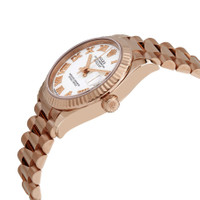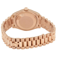 18kt everose gold case with a 18kt everose gold Rolex President bracelet. Fixed fluted 18kt everose gold bezel. White dial with luminous everose gold hands and Roman numeral hour markers. Dial Type: Analog. Luminescent hands and markers. Date display at the 3 o'clock position. Rolex calibre 2236 automatic movement, based upon Rolex 2235, containing 31 Jewels, bitting at 28800 vph, and has a power reserve of approximately 55 hours. Scratch resistant sapphire crystal. Screw down crown. Solid case back. Round case shape. Case size: 31 mm. Fold over clasp. Water resistant at 100 meters / 330 feet. Functions: date, hour, minute, second. Datejust 31 Series. Luxury watch style. Watch label: Swiss Made. Rolex Datejust 31 White Dial Automatic Ladies 18kt Everose Gold President Watch 278275WRP. INFORMATION Brand: Rolex Series: Datejust Collection Name: Datejust Gender: Womens Model: 278275WRP Watch Label: Swiss Made Movement: Automatic Engine: Rolex Calibre 2236 Power Reserve: 55 hours CASE Case Size: 31 mm Case Material: 18kt Everose Gold Case Shape: Round Case Back: Solid BAND Band Material: 18kt Everose Gold Rolex President Band Type: Bracelet Clasp: Fold Over DIAL Dial Color: White Type: Analog Crystal: Scratch Resistant Sapphire Hands: Luminous Everose Gold Dial Markers: Roman Numeral Luminiscence: Hands and Markers Bezel: Fixed Fluted Bezel Material: 18kt Everose Gold Crown: Screw Down FEATURES Water Resistance: 100 meters / 330 feet Calendar: Date display at the 3 o'clock position Functions: Date, Hour, Minute, Second Watch Features: Gold, Analog ADDITIONAL INFO Watch Style: Luxury Warranty: 2 Year Jomashop Warranty Jomashop Sku: RLX278275WRP Department: Watches Category: Watches