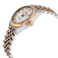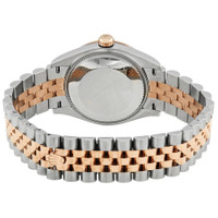 Stainless steel and 18kt everose gold case with a stainless steel and 18kt everose gold jubilee bracelet. Fixed- fluted bezel. White dial with everose gold hands and Roman numeral hour markers. Dial Type: Analog. Date display at the 3 o'clock position. Rolex Calibre 2236 automatic movement with a 55-hour power reserve. Scratch resistant sapphire crystal. Screw down crown. Solid case back. Round case shape. Case size: 31 mm. Folding clasp. Water resistant at 100 meters / 330 feet. Functions: date, hour, minute, second. Luxury watch style. Watch label: Swiss Made. Rolex Datejust 31 White Dial Automatic Ladies Steel and 18kt Everose Gold Jubilee Watch 278271AURDJ. CASE Case Size: 31 Case Material: Stainless Steel and 18kt Everose Gold Case Shape: Round Case Back: Solid BAND Band Material: Stainless Steel and 18kt Everose Gold Jubilee Band Type: Bracelet Clasp: Folding DIAL Dial Color: White Type: Analog Crystal: Scratch Resistant Sapphire Hands: Everose Gold Dial Markers: Roman Numeral Bezel: Fixed- Fluted Crown: Screw Down INFORMATION Brand: Rolex Series: Datejust Collection Name: Datejust Gender: Womens Model: M278271-0002 Watch Label: Swiss Made Movement: Automatic Engine: Rolex Calibre 2236 Power Reserve: 55 hours FEATURES Water Resistance: 100 meters / 330 feet Calendar: Date display at the 3 o'clock position Functions: Date, Hour, Minute, Second Watch Features: Stainless Steel, Gold, Analog ADDITIONAL INFO Watch Style: Luxury Warranty: 2 Year Jomashop Warranty Jomashop Sku: RLX278271WRJ Item Variation: 278271WRJ, 278271-0002 Department: Watches Category: Watches