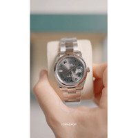 Stainless steel case with a stainless steel oyster bracelet. Fixed domed stainless steel bezel. Grey dial with silver-tone hands and Roman numeral hour markers. Arabic numeral minute markers (at 5 minute intervals). Minute markers around the outer rim. Dial Type: Analog. Luminescent hands and marker. Date display at the 3 o'clock position. Rolex calibre 3235 automatic movement, based upon Rolex 3035, containing 31 Jewels, bitting at 28800 vph, and has a power reserve of approximately 70 hours. Scratch resistant sapphire crystal. Screw down crown. Screw-down case back. Round case shape. Case size: 36 mm. Fold over clasp with a 5 mm comfort extension link. Water resistant at 100 meters / 330 feet. Functions: date, hour, minute, second, chronometer. Datejust 36 Series. Luxury watch style. Watch label: Swiss Made. Rolex Datejust 36 Automatic Grey Dial Ladies Watch 126200GYRO. INFORMATION Brand: Rolex Series: Datejust Collection Name: Datejust Gender: Womens Model: 126200GYRO Watch Label: Swiss Made Movement: Automatic Engine: Rolex Calibre 3235 Power Reserve: 70 hours CASE Case Size: 36 mm Case Material: Stainless Steel Case Shape: Round Case Back: Screw-down BAND Band Material: Stainless Steel Oyster Band Type: Bracelet Band Color: Silver-tone Clasp: Fold Over with 5 mm comfort extension link DIAL Dial Color: Grey Type: Analog Crystal: Scratch Resistant Sapphire Hands: Silver-tone Dial Markers: Roman Numeral Second Markers: Arabic Numeral Minute Markers (at 5 minute intervals). Minute Markers around the outer rim Luminiscence: Hands and Marker Bezel: Fixed Domed Bezel Color: Silver-tone Bezel Material: Stainless Steel Crown: Screw Down FEATURES Water Resistance: 100 meters / 330 feet Calendar: Date display at the 3 o'clock position Functions: Date, Hour, Minute, Second, Chronometer Watch Features: Stainless Steel, Chronometer, Analog ADDITIONAL INFO Watch Style: Luxury Warranty: 2 Year Jomashop Warranty Jomashop Sku: RLX126200GYRO Department: Watches Category: Watches
