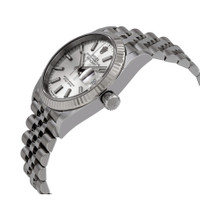 Stainless steel case with a stainless steel Rolex jubilee bracelet. Fixed fluted 18kt white gold bezel. Silver dial with luminous silver-tone hands and index hour markers. Minute markers around the outer rim. Dial Type: Analog. Luminescent hands and markers. Date display at the 3 o'clock position. Rolex calibre 3235 automatic movement with a 70-hour power reserve. Scratch resistant sapphire crystal. Screw down crown. Solid case back. Round case shape. Case size: 36 mm. Oysterlock clasp. Water resistant at 100 meters / 330 feet. Functions: date, hour, minute, second. Luxury watch style. Watch label: Swiss Made. Rolex Datejust 36 Automatic Silver Dial Ladies Jubilee Watch 126234SRDJ. INFORMATION Brand: Rolex Series: Datejust Collection Name: Datejust Gender: Womens Model: 126234SSJ Watch Label: Swiss Made Movement: Automatic Engine: Rolex Calibre 3235 Power Reserve: 70 hours CASE Case Size: 36 mm Case Color: Silver-Tone Case Material: Stainless Steel Case Shape: Round Case Back: Solid BAND Band Material: Stainless Steel Rolex Jubilee Band Type: Bracelet Band Color: Silver-tone Clasp: Oysterlock DIAL Dial Color: Silver Type: Analog Crystal: Scratch Resistant Sapphire Hands: Luminous Silver-tone Dial Markers: Index Second Markers: Minute Markers around the outer rim Luminiscence: Hands and Markers Bezel: Fixed Fluted Bezel Material: 18kt White Gold Crown: Screw Down FEATURES Water Resistance: 100 meters / 330 feet Calendar: Date display at the 3 o'clock position Functions: Date, Hour, Minute, Second Watch Features: Stainless Steel, Gold, Analog ADDITIONAL INFO Watch Style: Luxury Warranty: 2 Year Jomashop Warranty UPC Code: 842047177914 Jomashop Sku: RLX126234SSJ Department: Watches Category: Watches
