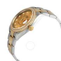 Stainless steel case with a stainless steel Rolex oyster bracelet with 18kt yellow gold links. Fixed 18kt yellow gold bexel set with diamonds. Champagne dial with yellow gold hands and diamond hour markers. Minute markers around the outer rim. Dial Type: Analog. Date display at the 3 o'clock position. Rolex calibre 3235 automatic movement, based upon Rolex 3035, containing 31 Jewels, bitting at 28800 vph, and has a power reserve of approximately 70 hours. Scratch resistant sapphire crystal. Screw down crown. Solid case back. Round case shape. Case size: 36 mm. Oyster clasp. Water resistant at 100 meters / 330 feet. Functions: date, hour, minute, second. Luxury watch style. Watch label: Swiss Made. Rolex Datejust 36 Champagne Diamond Dial Men's Steel and 18kt Yellow Gold Oyster Watch 126283CDO. INFORMATION Brand: Rolex Series: Datejust Collection Name: Datejust Gender: Mens Model: 126283CDO Watch Label: Swiss Made Movement: Automatic Engine: Rolex Calibre 3235 Power Reserve: 70 hours CASE Case Size: 36 mm Case Color: Silver-Tone Case Material: Stainless Steel Case Shape: Round Case Back: Solid BAND Band Material: Stainless Steel with 18kt Yellow Gold Rolex Oyster Band Type: Bracelet Band Color: Silver-tone Clasp: Oysterclasp DIAL Dial Color: Champagne Type: Analog Crystal: Scratch Resistant Sapphire Hands: Yellow Gold Dial Markers: Diamond Second Markers: Minute Markers around the outer rim Bezel: Fixed Bezel Material: 18kt Yellow Gold set with Diamonds Crown: Screw Down FEATURES Water Resistance: 100 meters / 330 feet Calendar: Date display at the 3 o'clock position Functions: Date, Hour, Minute, Second Watch Features: Diamond, Stainless Steel, Gold, Analog ADDITIONAL INFO Watch Style: Luxury Warranty: 2 Year Jomashop Warranty Jomashop Sku: RLX126283CDO Department: Watches Category: Watches