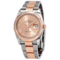 Stainless steel and 18kt everose gold case with a stainless steel and 18kt everose gold oyster bracelet. Fixed- fluted bezel. Pink dial with everose gold hands and Roman numeral hour markers. Dial Type: Analog. Date display at the 3 o'clock position. Rolex Calibre 3235 automatic movement with a 70-hour power reserve. Scratch resistant sapphire crystal. Screw down crown. Solid case back. Round case shape. Case size: 36 mm. Water resistant at 100 meters / 330 feet. Functions: date, hour, minute, second. Luxury watch style. Watch label: Swiss Made. Rolex Datejust 36 Pink Diamond Dial Men's Steel and 18kt Everose Gold Oyster Watch 126231PKRDO. CASE Case Size: 36 Case Material: Stainless Steel and 18kt Everose Gold Case Shape: Round Case Back: Solid BAND Band Material: Stainless Steel and 18kt Everose Gold Oyster Band Type: Bracelet Band Color: Two-tone (Silver-tone and Rose Gold-tone) DIAL Dial Color: Pink Type: Analog Crystal: Scratch Resistant Sapphire Hands: Everose Gold Dial Markers: Roman Numeral Bezel: Fixed Fluted Bezel Material: 18kt Everose Gold Crown: Screw Down INFORMATION Brand: Rolex Series: Datejust Collection Name: Datejust Gender: Mens Model: 126231PKRDO Watch Label: Swiss Made Movement: Automatic Engine: Rolex Calibre 3235 Power Reserve: 70 hours FEATURES Water Resistance: 100 meters / 330 feet Calendar: Date display at the 3 o'clock position Functions: Date, Hour, Minute, Second Watch Features: Diamond, Stainless Steel, Gold, Analog ADDITIONAL INFO Watch Style: Luxury Warranty: 2 Year Jomashop Warranty Jomashop Sku: RLX126231PKRDO Department: Watches Category: Watches